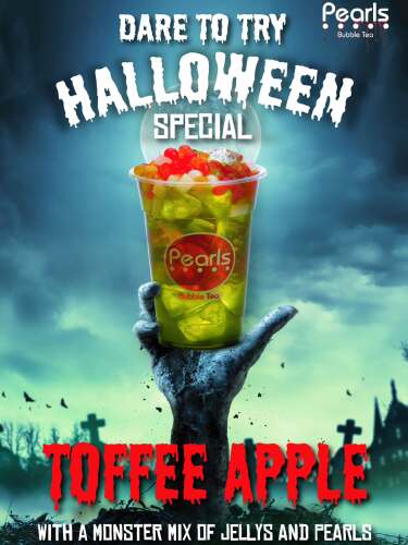 It's baaaack… 👀🍏 Your Halloween fave Toffee Apple has returned! 🎃💚 Think crisp apple, sweet toffee drizzle, and those iconic chewy pearls — it’s the ultimate autumn treat you’ve been craving. Here for a limited time only, so get your spooky fill before it vanishes! 👻🎃 #PearlsBubbleTea #ToffeeAppleTea #HalloweenAtPearls #SpookySeason #Boba